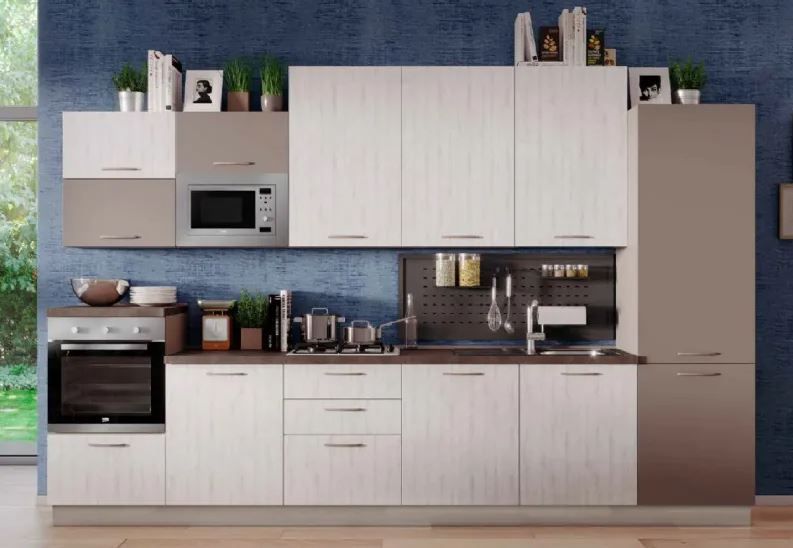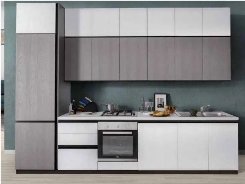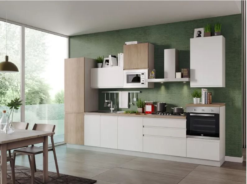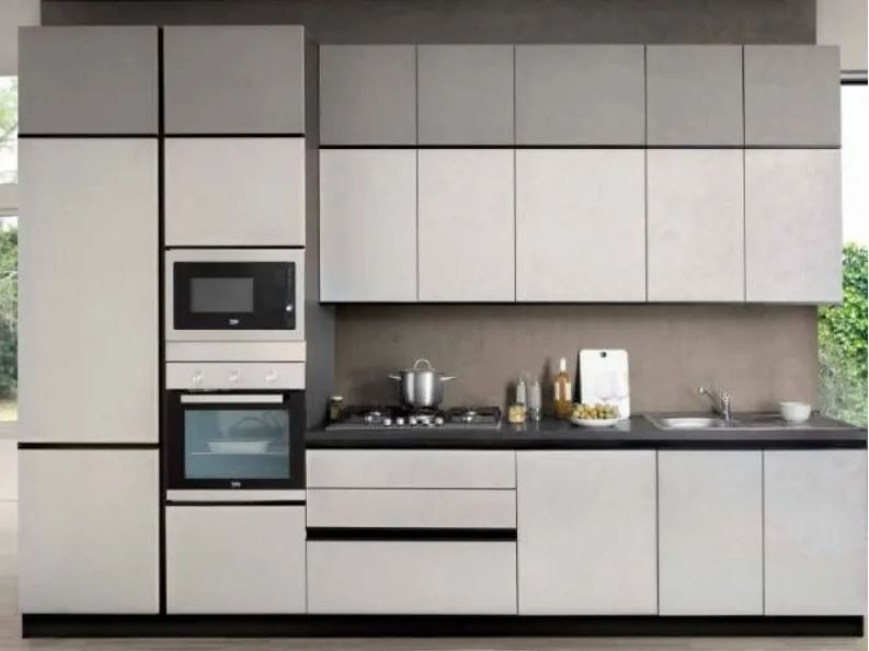 Cucina lineare moderna di lunghezza 360 cm completa di 4 elettrodomestici Beko