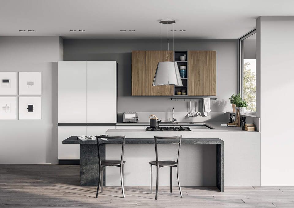 Cucina moderna a isola dal design minimalista-Isola con piano snack