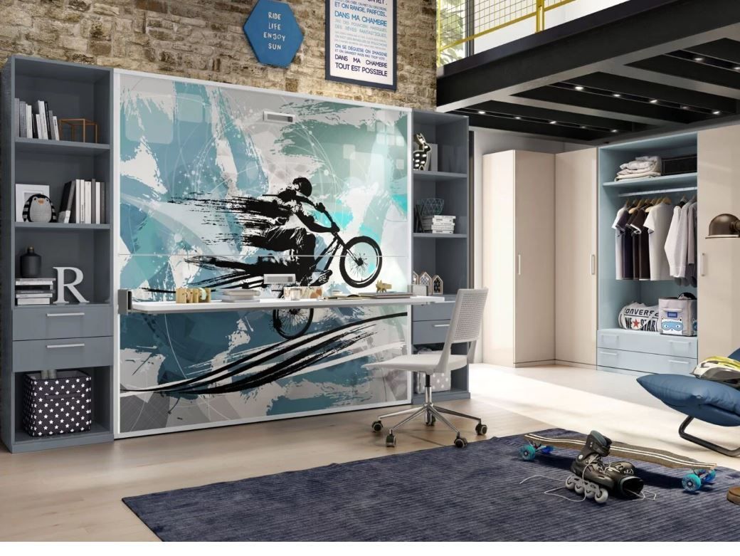 Letto a scomparsa matrimoniale pratico a cassettoni