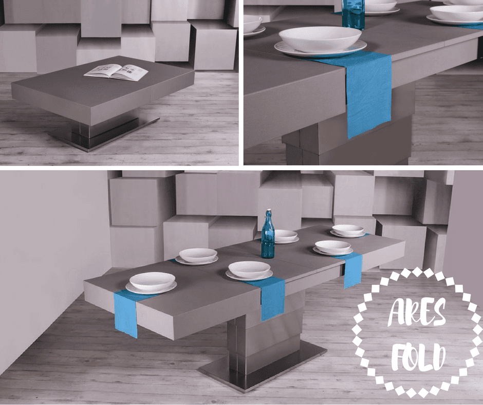 Tavoli allungabili o a scomparsa, alzabili o pieghevoli.